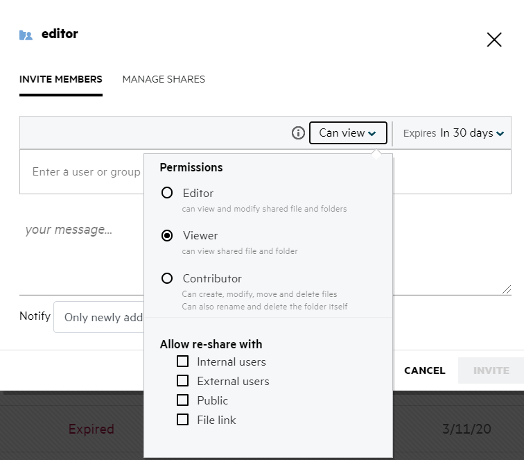 Expiry: The date of share expiry. After this date, you no longer have access to the shared item.