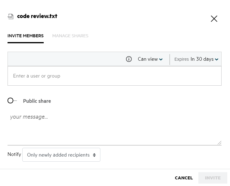 Share Link is used to generate a link to share a file/folder. A user with the share link can access the file without authentication. The user can view or download a file but cannot move, edit or delete it. You can generate a link to: