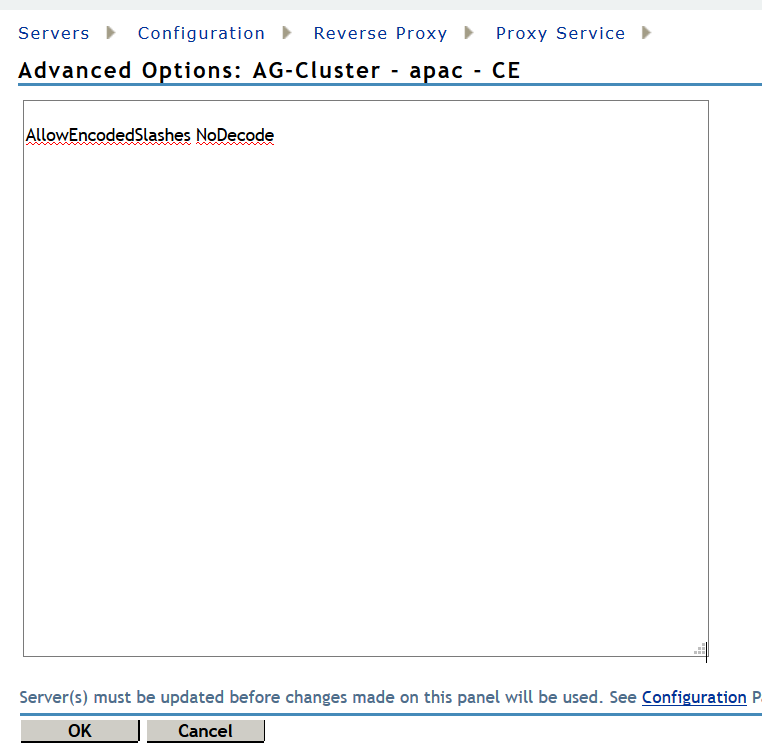 1. In the Advanced Options, specify AllowEncodedSlashes NoDecode.