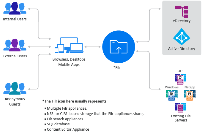 Existing Directory Services and File Servers: Are not impacted because Filr does the following: