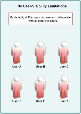 In the default state, there are no user-visibility limitations in Filr.