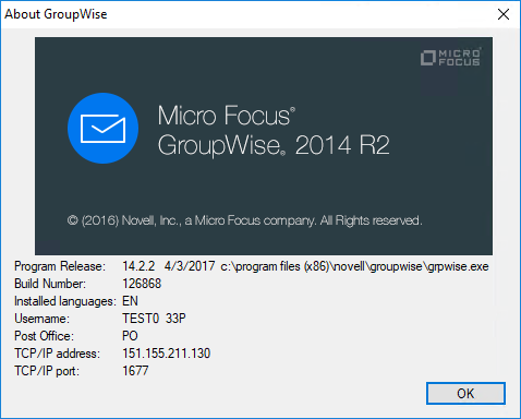 Note the Program Release field in the pop-up window. It must say ‘GroupWise 2014’ or later.