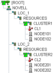 Cluster nodes and Cluster objects can exist anywhere in the eDirectory tree. The virtual server object, cluster pool object, and cluster volume object are automatically created in the eDirectory context of the server where the cluster resource is created and cluster-enabled.