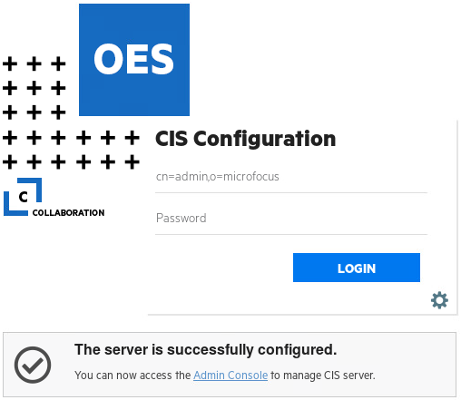 • Point your browser to https://<OES server IP address or host name>:8105 and click Admin Console link to go to CIS Administration login page.