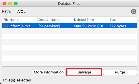 Select the salvageable files, then click Salvage. The selected files are salvaged.