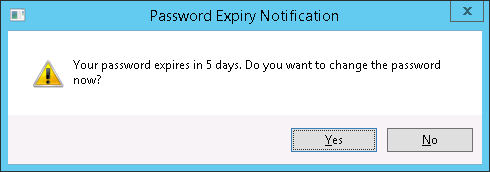 The password expiry notification is configured by the registry entry PCNotifyConf in HKEY_LOCAL_MACHINE\SYSTEM\CurrentControlSet\Control\NetworkProvider\Notifyees key. This key is created by the installation of NFARM with the default value as 10 days and can be modified based on the requirement. For example, if the value is configured as 20 days, the password expiry notification is displayed 20 days before the expiry time, 5 days before the expiry time, 3 days before the expiry time, 1 day before the expiry time, and last day of the password expiry time.