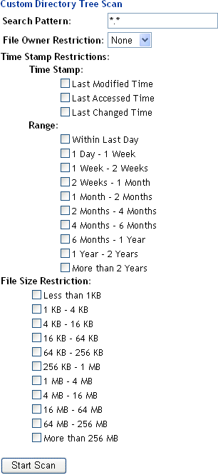 Click the Start Scan button to generate an inventory of the entire server (the default selection is the / [root] subdirectory).
