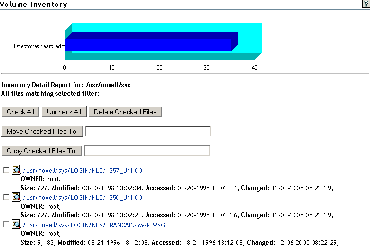 You can inventory NCP mounted volumes, or general file system directories or subdirectories as well as view graphs, profiles, reports, and key statistics about each of these items, including space usage trends.