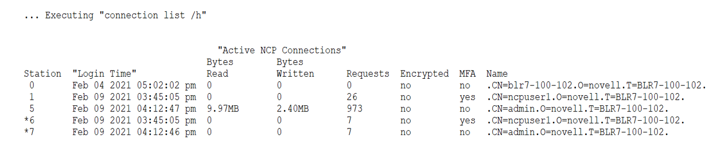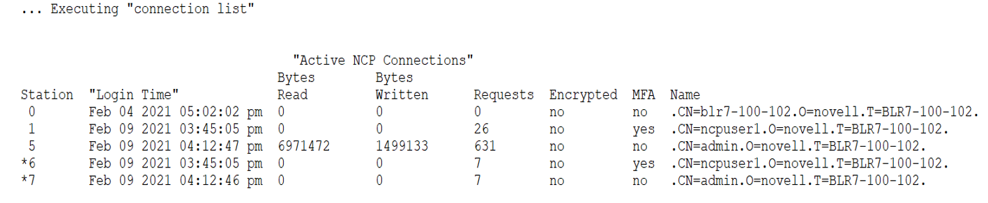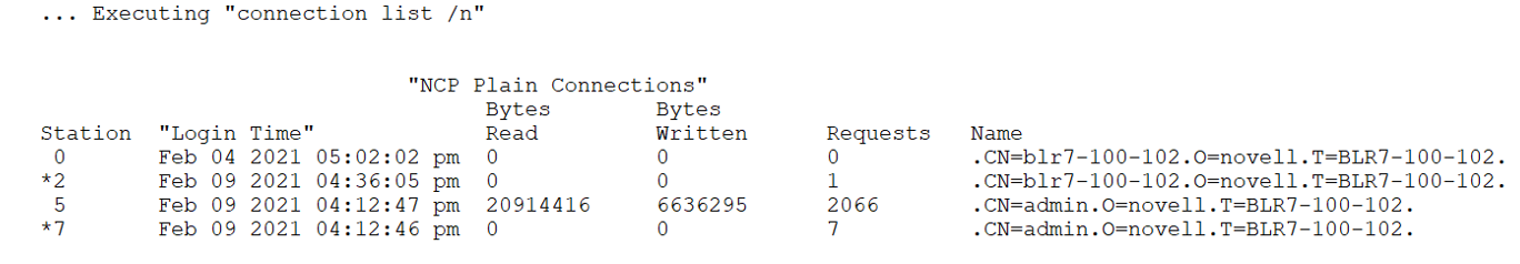NCP connections in use
