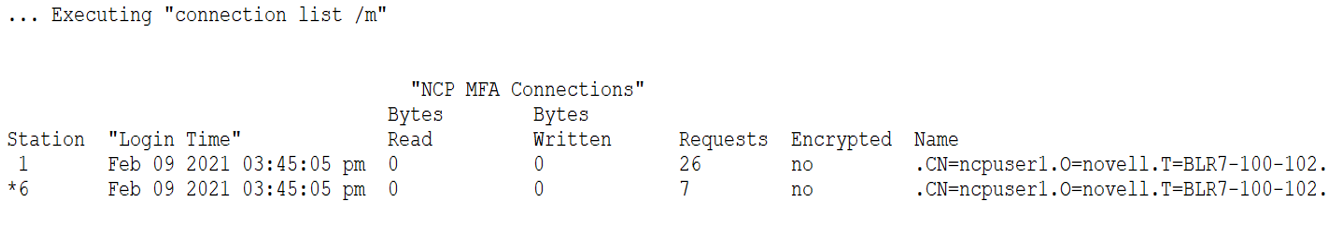 Allows you to verify the current number of concurrent NCP threads running on the server. Use this command to verify the settings that you make for the ADDITIONAL_SSG_THREADS and CONCURRENT_ASYNC_REQUESTS settings.