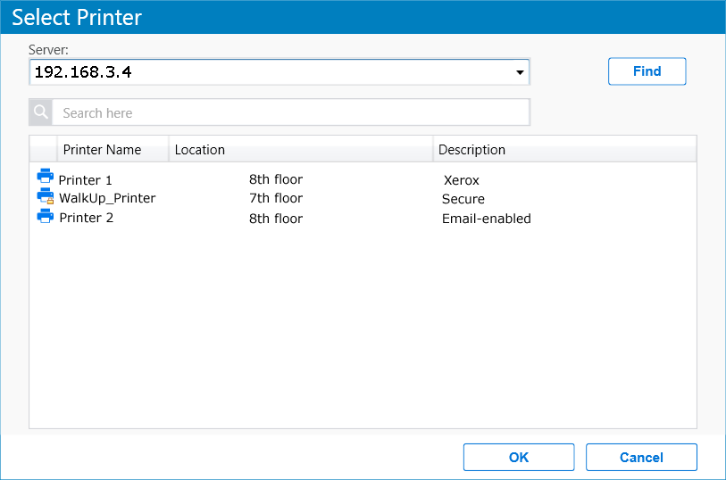 For secure or a WalkUp printer, you must login to the server. On logging in, printers are displayed through ACLs set for that user. For username, you can login using either the CN of the username or in a LDAP format (comma separated).