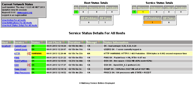 View the HTTP status in the Nagios main dashboard.