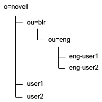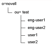 When the users are migrated to ou=test.o=novell, the resulting tree structure is shown in Figure 16-2.