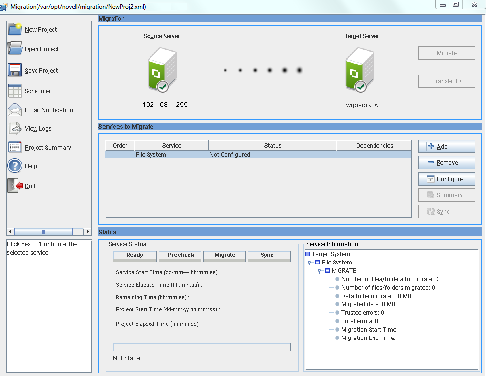 Services to Migrate Pane