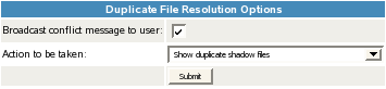 4. In the Duplicate File Resolution Options area, click Submit to save and apply the change.