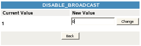 3. If the DISABLE_BROADCAST parameter is enabled (set to 1), click the link for the value in the Parameter Value column to open a page where you can change the value.