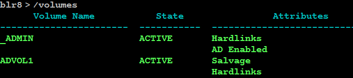 The Hard Links attribute cannot be viewed in NSSMU or in the Storage plug-in to iManager. Use the nss /volumes command to determine whether the Hard Links attribute is set for the NSS volume. In the Attributes column, the Hard Links attribute is listed if the attribute is enabled.