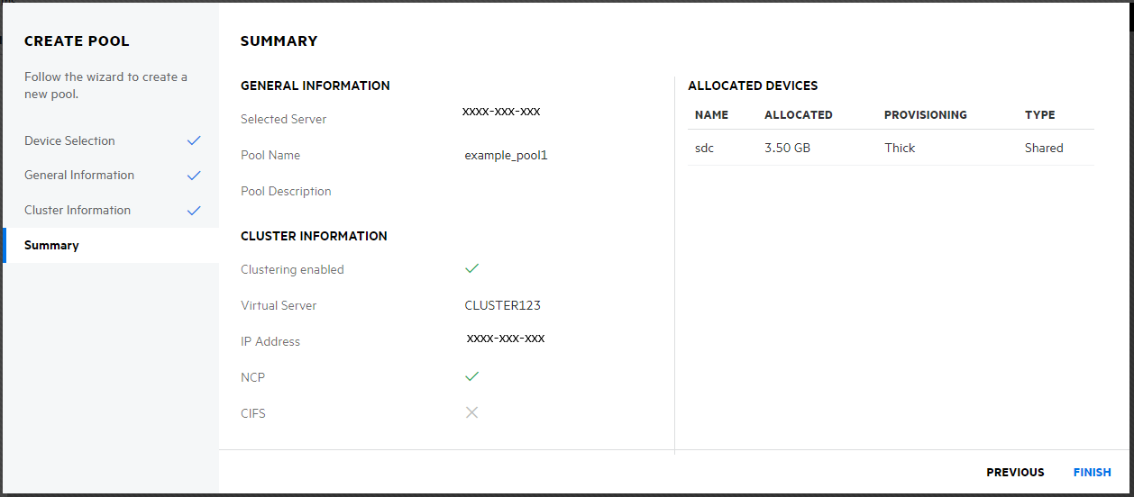 Review the pool details, and click FINISH to create the pool.