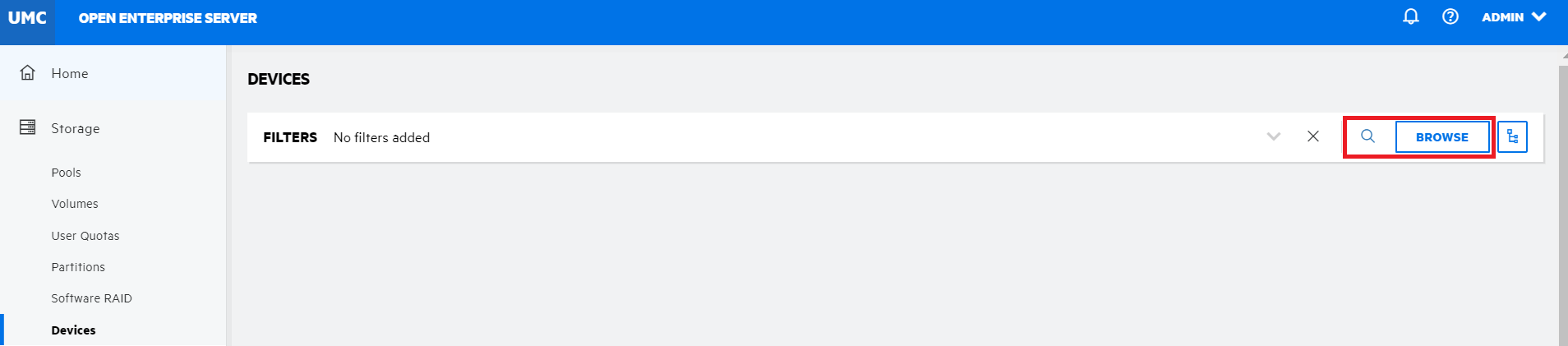 Search or browse the servers to list the devices associated with them.