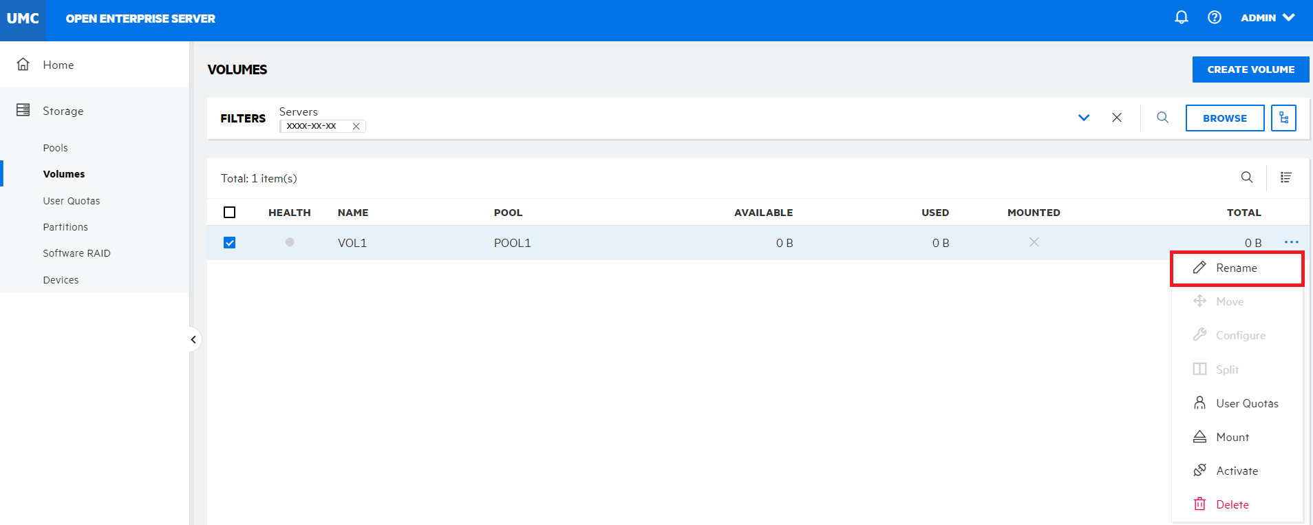 Specify the new name for the volume, and then click CONFIRM.