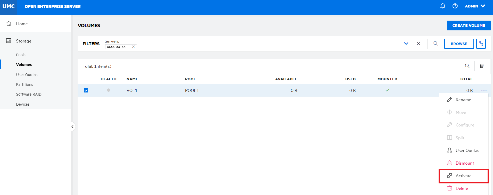 1. Select the volume, click More Options icon, and then select Activate.