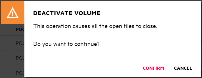 2. Click CONFIRM to deactivate the selected volume.