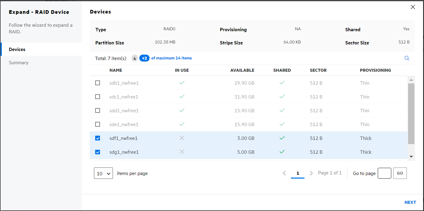 IMPORTANT:If the software RAID device is shared in a cluster, connect to the node where the RAID is currently active to manage the RAID and increase the size of the RAID.