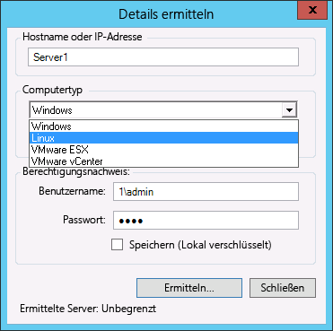 Geben Sie einen Administrator-Berechtigungsnachweis für den zu ermittelnden Computer an.