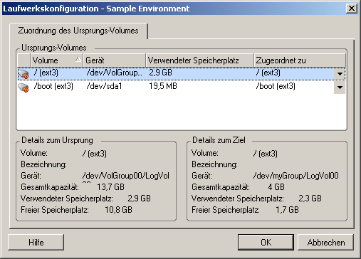 Zugeordnet zu: Ordnen Sie jedes Volume auf dem Ursprung einem vorhandenen Volume auf dem Ziel zu. |