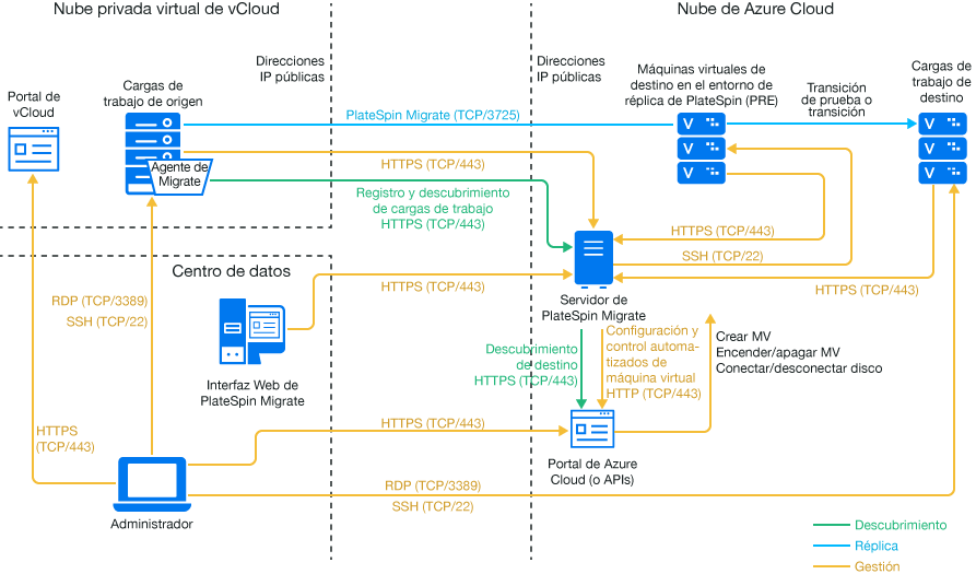PlateSpin Migrate admite la migración de cargas de trabajo desde VMware vCloud Director a Microsoft Azure.