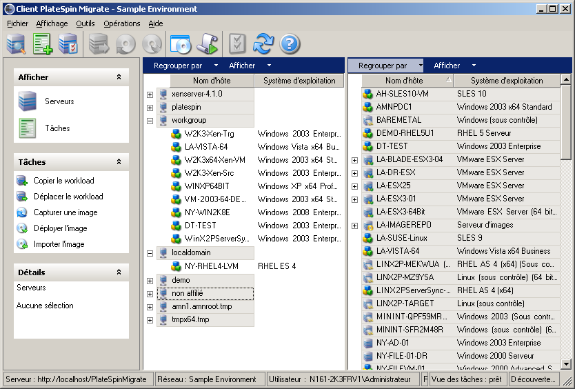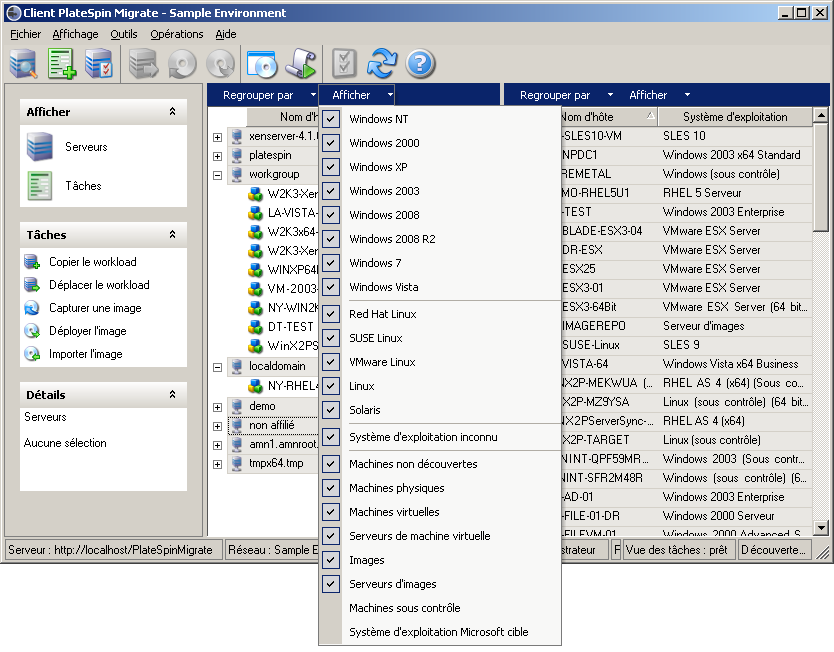Vue des tâches : la vue des tâches affiche toutes les tâches, notamment de découverte, de migration et de capture d'image. Reportez-vous à la Section 3.2.3, Vue Tâches.
