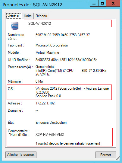 Les propriétés d'une machine virtuelle fournissent des informations concernant l'environnement de cette dernière sur sa plate-forme de virtualisation correspondante, y compris des renseignements sur l'hôte et la quantité de mémoire allouée ainsi que la capacité de traitement.