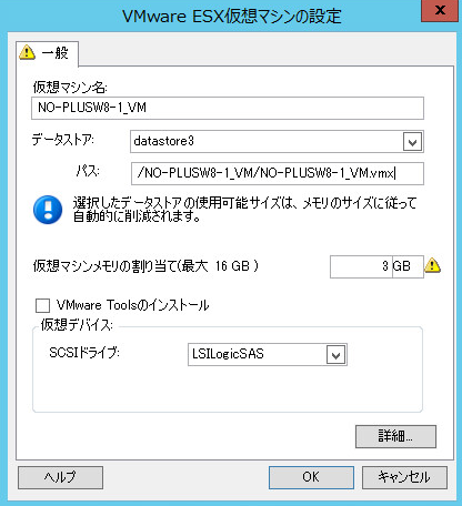 詳細: VMの詳細な環境設定を表示または変更するには、このボタンをクリックします。