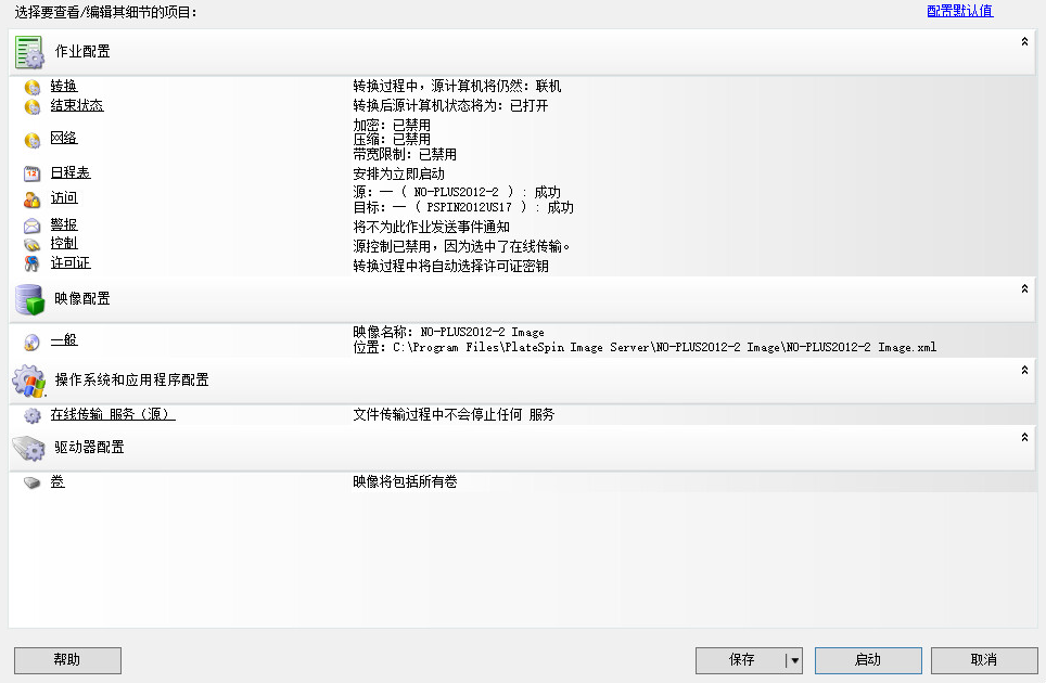 4. 单击每个类别中的链接,为迁移作业指定所需的设置。