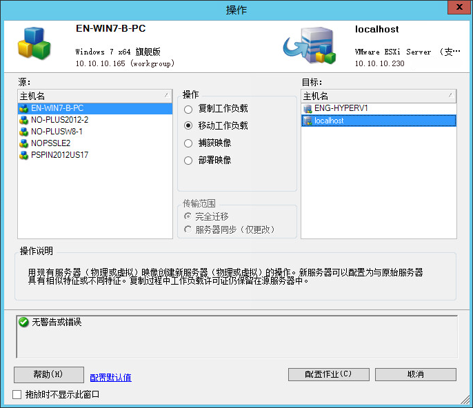 图 32-1 对等迁移作业窗口