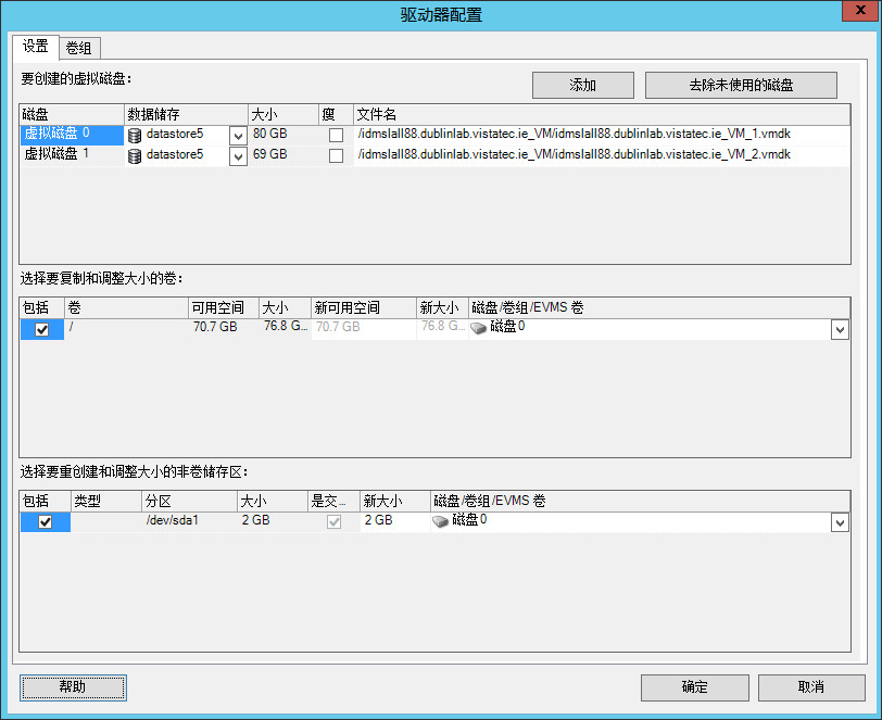 指定要迁移的驱动器和卷配置。