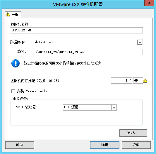 数据储存:选择 ESX Server 上要用于存放 vmdk 文件的数据储存卷。