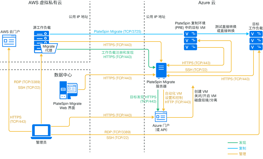 PlateSpin Migrate 支持将工作负载从 Amazon Web Services EC2 云迁移到 Microsoft Azure 云。