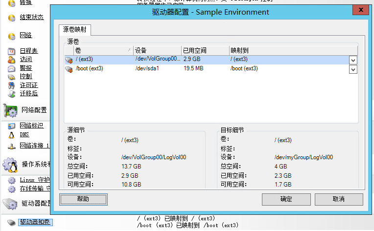 2. 在“迁移作业”窗口的驱动器配置部分,单击根据目标类型显示的卷映射驱动器和卷选项。