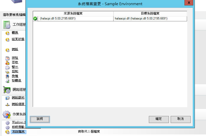 2. 在「移轉工作」視窗的「作業系統與應用程式組態」區段,按一下系統檔案