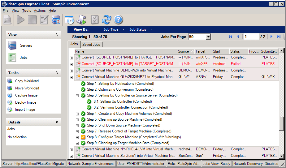 Figure 3-6 PlateSpin Migrate Client‘s Jobs View