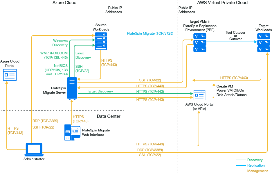 PlateSpin Migrate supports migration of workloads from Microsoft Azure Cloud to Amazon Web Services EC2 Cloud.