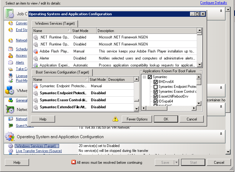 If you want to configure a job to restore the original start-up mode of the service post the migration. For example, you might want to disable a virus scanner during the migration, but restore the start-up mode of the scanner after the migration completes.