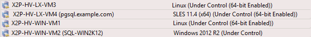 Figure 3-1 provides an example of X2P host names for target workloads with and without an operating system present. Workloads X2P-HV-LX-VM3 and X2P-HV-WIN-VM1 do not have an underlying operating system. The LRD information is displayed as the operating system.