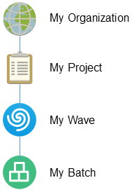 PTM automatically creates a default organization (My Organization), project (My Project), wave (My Wave), and batch (My Batch). See Figure 10-1. The start date is set by default to the installation date, with an end date one year later. Workloads are automatically assigned the default wave and batch unless you create additional waves and batches for the project.